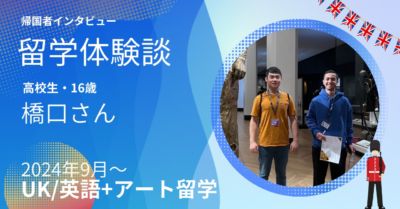 こんにちは。アフィニティ、イギリス担当の中里です。 イギリス、ロンドンにある語学学校、Kings Education に留学された、橋口さん(16歳)の体験談をご紹介いたします。 今回の留学の目的は、イギリスでアートを学 … 続きを読む 【体験談】16歳の現役高校生!ロンドンで初めての「英語+アート&デザイン留学」