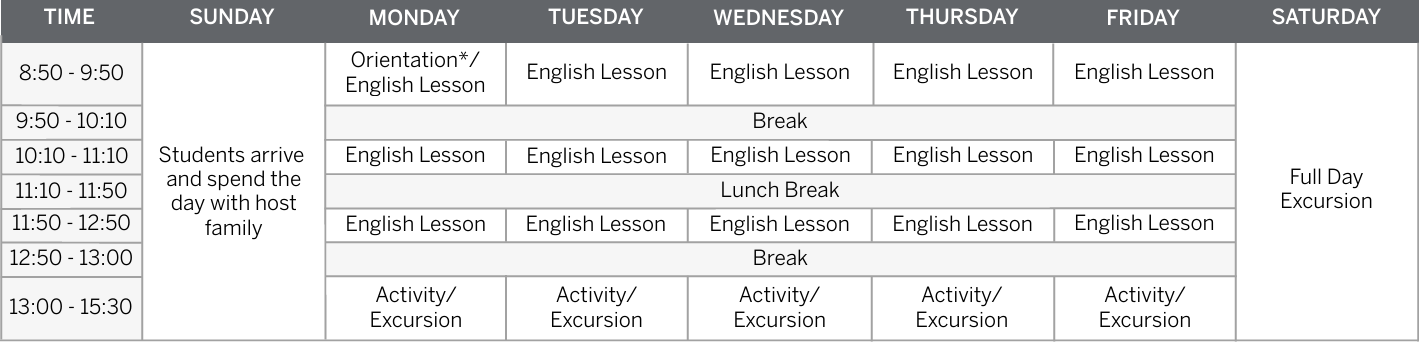 | コース 内容 | 週15時間の語学学習+⼟曜⽇の終⽇遠⾜(週6⽇間のプログラム) |
