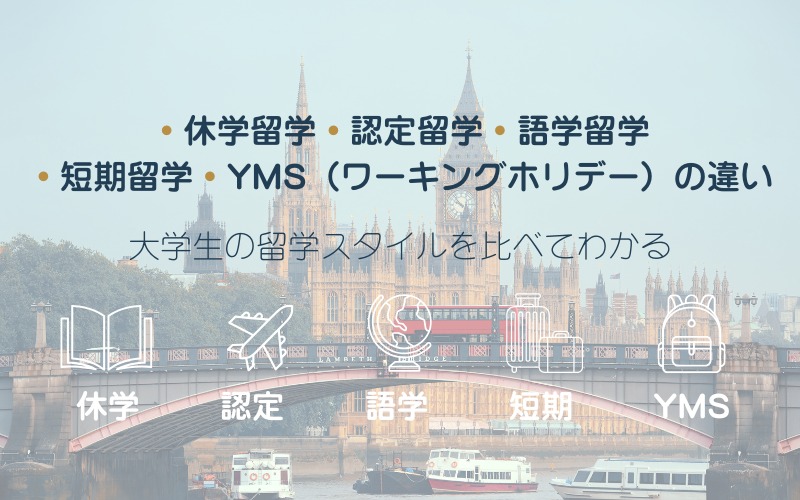 「休学留学」「認定留学」「語学留学」「短期留学」「YMS(ワーキングホリデー)」の違い