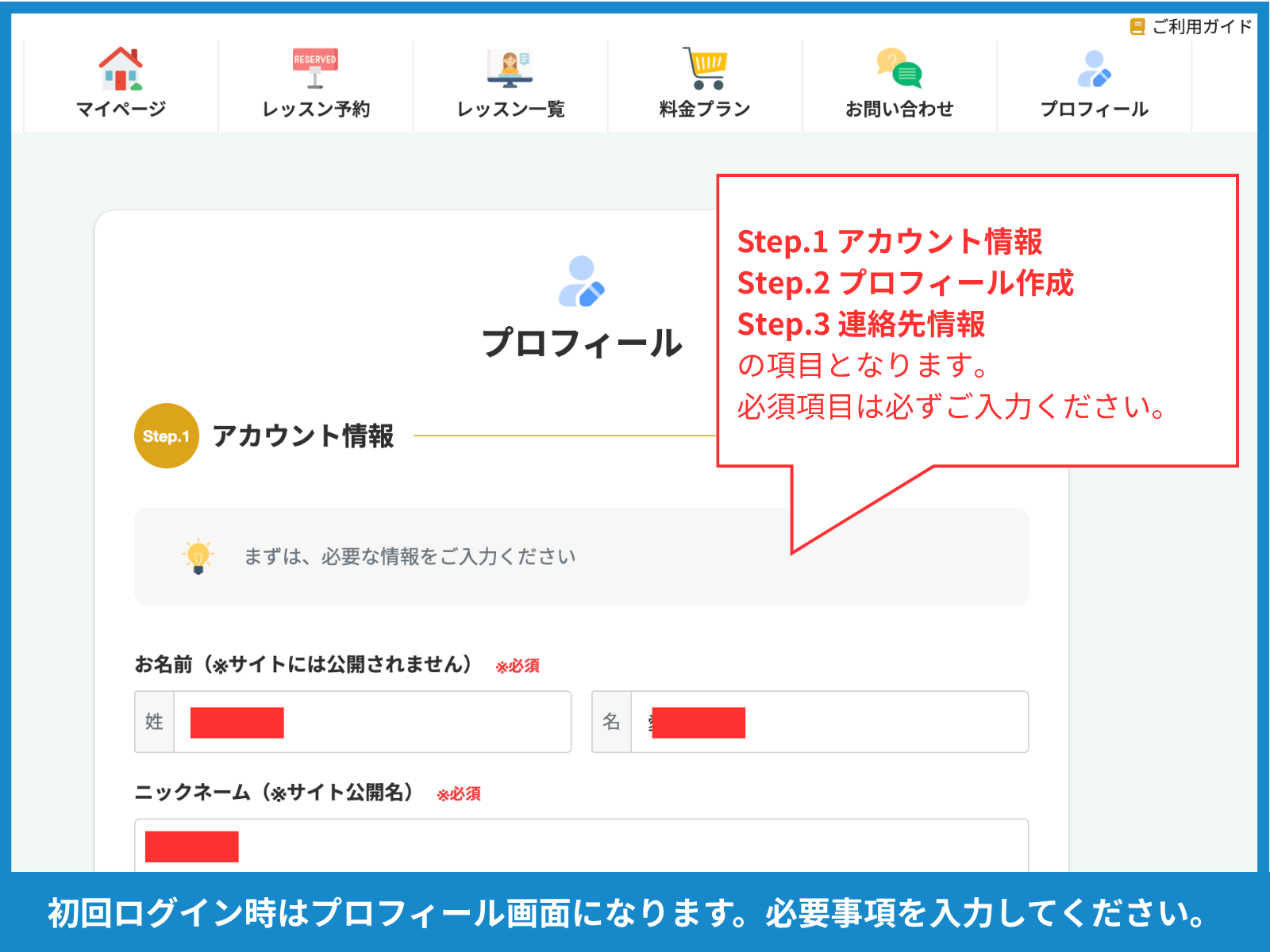 上記方法でアカウントの登録が完了したら、マイページよりレッスンの予約を行ってください。
