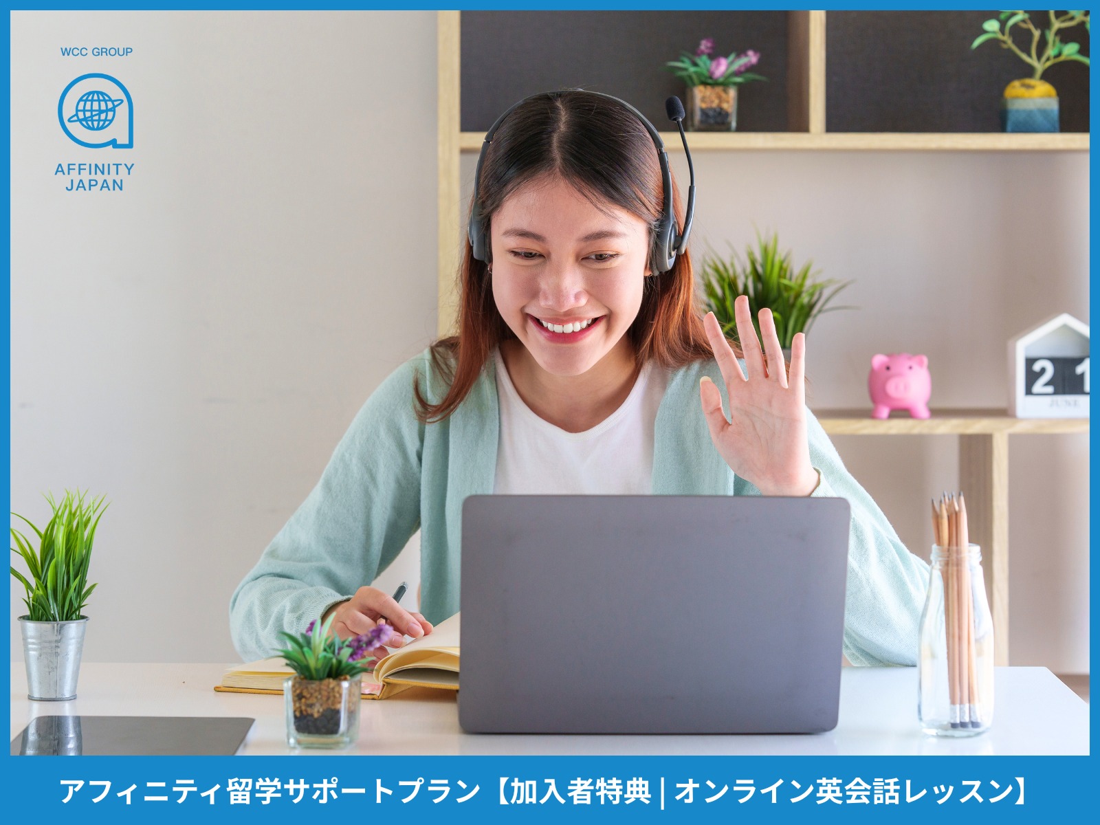 留学会社アフィニティでは、留学サポートに加入いただいたお客様全員に、加入者特典として無料のオンライン英会話レッスンをプレゼントしています。