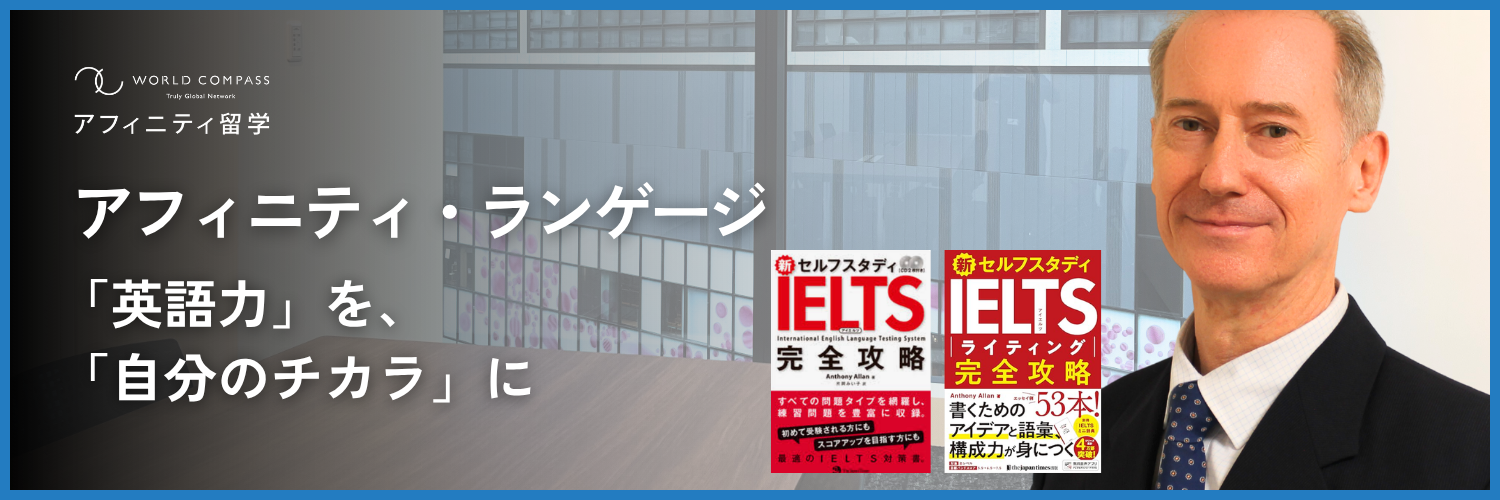 「新セルフスタディIELTS完全攻略本」の著者であるアンソニー先生のマンツーマンレッスンを受けられるのは、アフィニティ・ランゲージだけ!