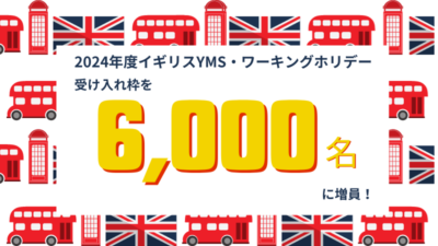 こんにちは。アフィニティ・イギリス担当の中里です。 来年度YMS2024の募集人数について新しい動きがありました。 なんと来年は、現在の年間募集人数1,500名から、一気に6,000名まで募集人数が増えるそうです。 外務 … 続きを読む 【速報!】2024年度イギリスYMS(ワーキングホリデー)の募集人数が発表されました!