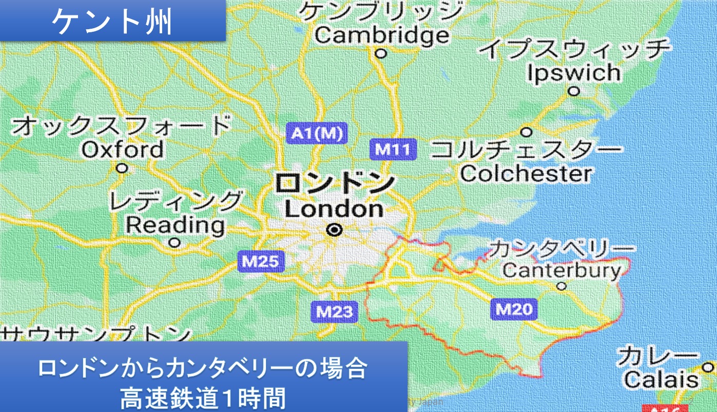 州内の主要都市カンタベリーへは、ロンドンから電車で最短約1時間とアクセスも良好。