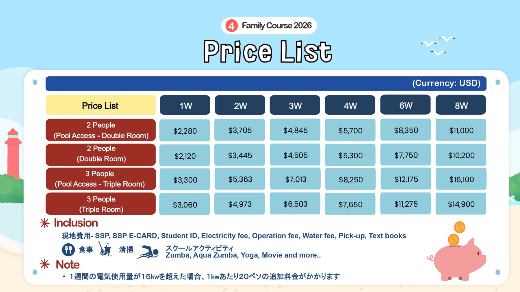 親子で一緒に学べる特別な時間をリゾート感溢れるセブ島でお過ごし頂ける大人気プログラムです!