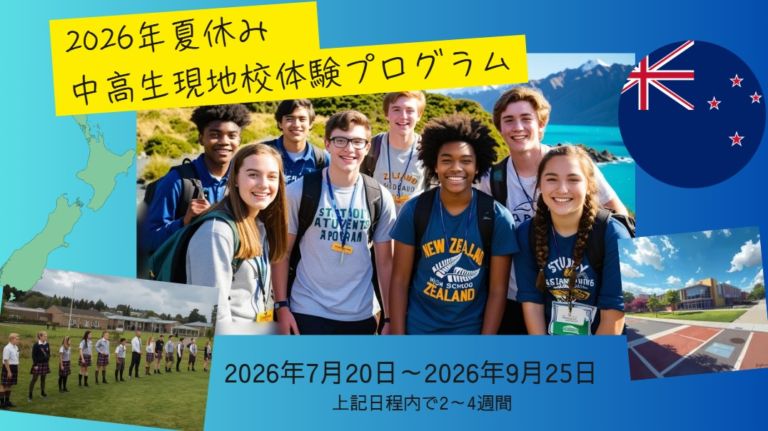 高校生の留学先としても大人気のニュージーランド!南半球に位置するニュージーランドは季節が逆になるので、夏休みの時期でも現地校への体験留学が可能です! 夏休み期間を利用した現地校体験プログラムを経験してみませんか?現地校体 … 続きを読む 【2026年 | 夏休み・トビタテ!】中高生ジュニア留学プログラム – ニュージーランド:現地校体験プログラム