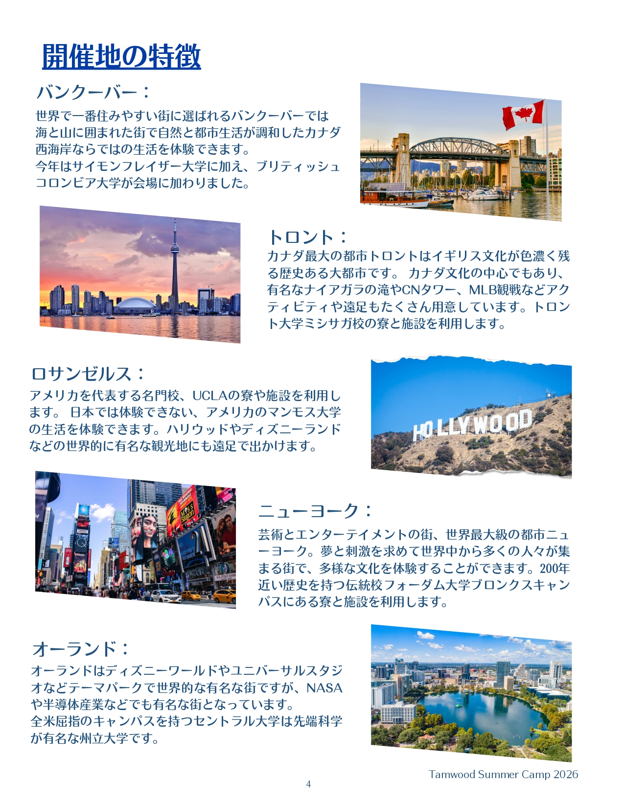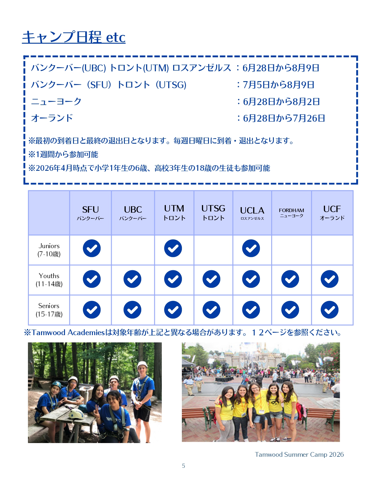 2026年夏 小中高生におすすめ *Tamwood 国際サマーキャンプ(アメリカ・カナダ全5都市)