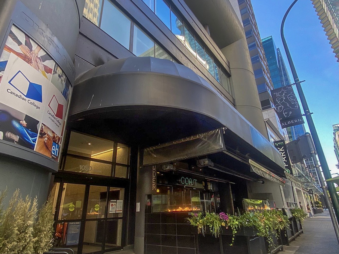 バンクーバー中心部、観光客で賑わうショッピング街にキャンパスがあります。駅、バス停も近くにあり毎日の通学に便利な場所に位置しています。